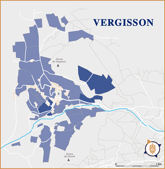 This Premier Cru is situated on the clay and limestone slopes of the Roche de Vergisson, at an altitude of 350 metres, with a south/south-west exposure. The very stony, deep soils are made up of grey-blue marl from the ancient Jurassic period. This terroir, with its wide temperature range, allows the Chardonnay grape variety to express itself to the full.
