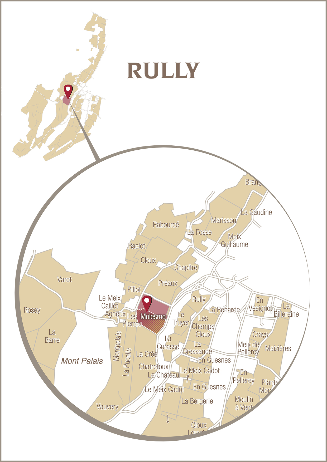 OrigineRully est l’un des villages réputés de la Côte Chalonnaise, au sud de la Bourgogne. Il s’agit d’une appellation communale composée de 23 climats classés en Premiers Crus.